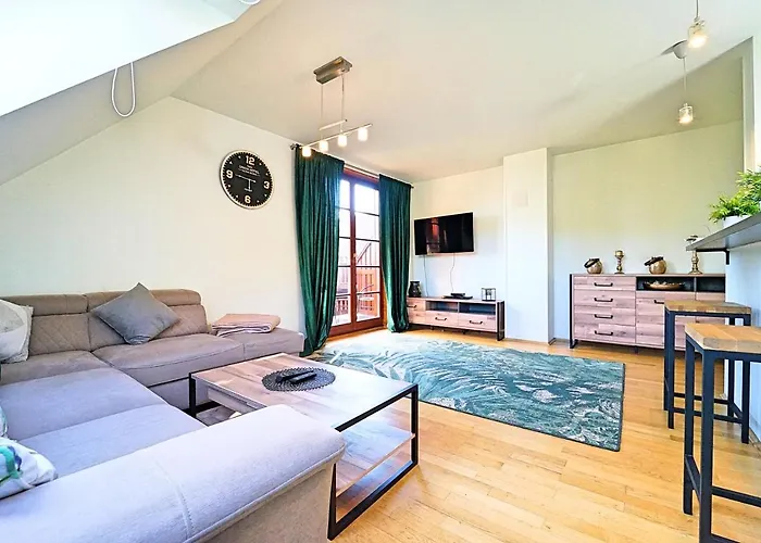Apartamenty Everysky - Okrzei 1B appartement van 70 m^2 ligt in Karpacz op afstand van 3 km tot de Berg Sniezka en biedt een uitzicht op de berg. Het appartement beschikt over een draadloos internet in openbare gebieden.